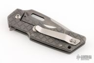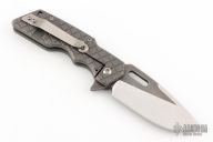 This Custom Mark 1 Flipper by A2D Mercantile features a two-tone blade with flipper and thumbhole. The handle has a tumble finished titanium frame with frag pattern, orange peel finished titanium tip up clip. Nice detent and blade seating. Comes with a zippered case. The lock slips with pressure on the back of the blade, otherwise good condition.
