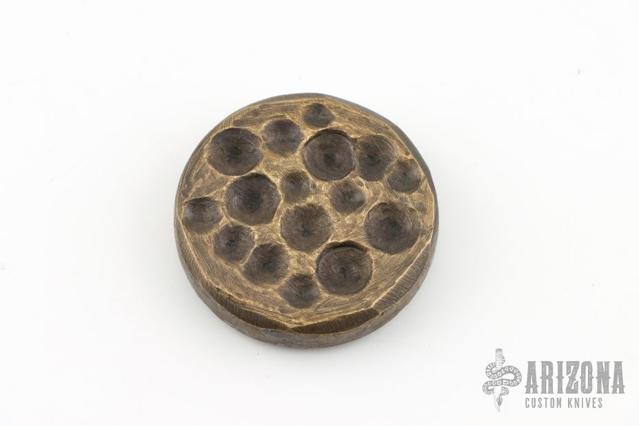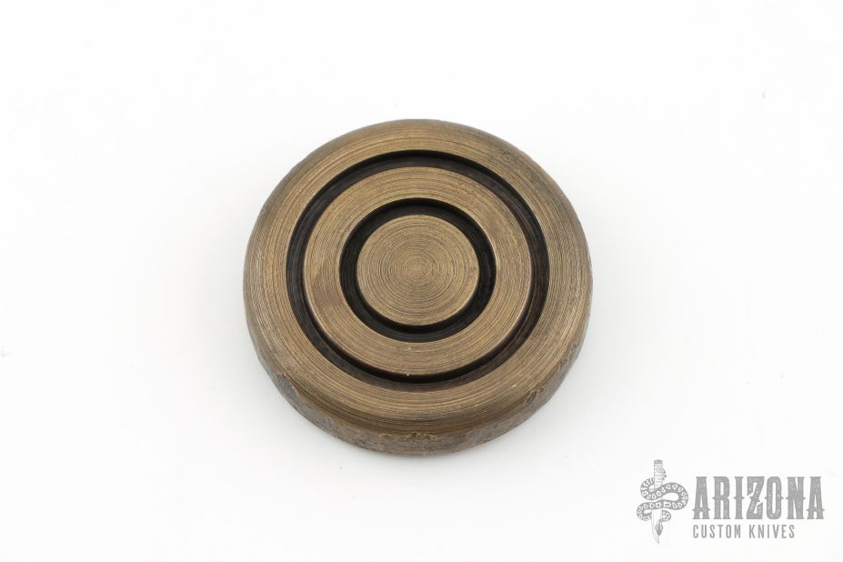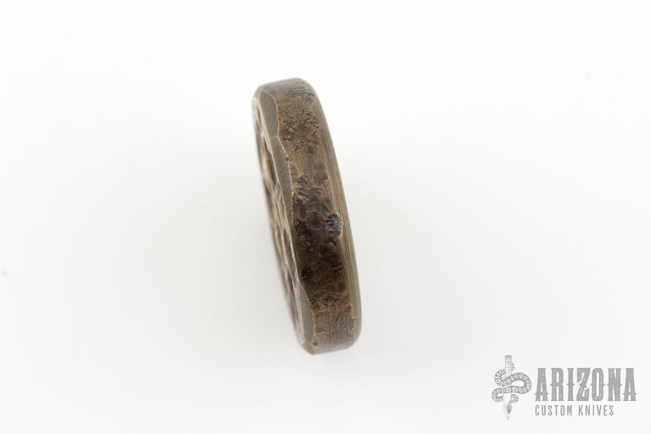 This textured worry coin by Alpha Design is made from solid brass and is .385" thick. New from maker.