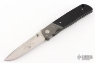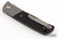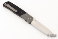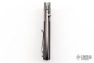 This TTF-5 from Bob Terzuola features a spear point blade with swedge, single thumbstud and a notched thumbrest. The handle has bead blasted titanium bolsters and liners, black G-10 scales, black backspacer, tip up titanium clip. Has a couple light scuffs, otherwise excellent condition. Comes with original card and tool.
