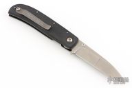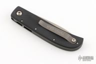 This TTF-6 linerlock by Bob Terzuola features a matte finished multi-ground blade with single thumbstud and black G-10 scales and a single titanium liner, blasted titanium tip up clip. Nice detent, lockup and blade seating. Excellent condition. Comes with original card and tool.