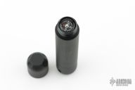 This Life Capsule by Triple Aught Design features hard anodized aluminum construction with threaded cap with lanyard hole on the other. 4.5" overall length with an internal depth of 2.75". 0.718" in diameter with an internal diameter of 0.585". Comes with a compass in one side, and survival items in the other. Wicks and matches. Excellent condition.