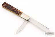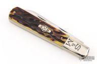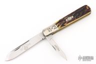 This 2-Blade Daddy Barlow by Schatt & Morgan features polished blades with nail nicks. The handle has nickel silver bolsters, groove bone covers, brass liners and stainless steel springs. Has half-stops. Comes with original box and paper. Has some light scratches, otherwise excellent condition.