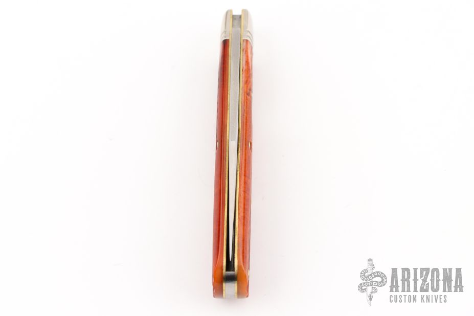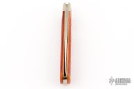 This slipjoint by Great Eastern Cutlery features a satin finished clip point blade with a nail nick. The handle has nickel silver bolsters, burnt orange jigged bone overs. Has half stop. Comes with original tube. Excellent condition. 97 made