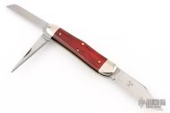 This Stockyard Whittler from Great Eastern Cutlery features three satin finish blades. One large clip point, one sheepsfoot and one small awl blade all with nail nicks. The handle is comprised of nickel silver front/rear bolsters and coffee house acrylic covers with nickel silver escutcheon over brass liners and steel springs. Includes original packaging. Excellent condition. 104 made.