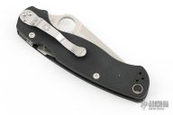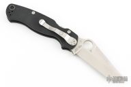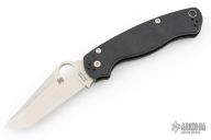 This Paramilitary 2 Linerlock Folder from Spyderco has a satin finished tanto blade with thumbhole and notched thumbrest. Handle is black G-10 with stainless steel liners and stainless steel 4-way reversible clip. Comes with original box and papers. New condition. This knife was a BladeHQ Exclusive.