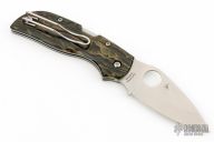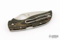 A Chaparral is a shrub native to the Western United States with the unique ability to perennially survive, revive and regenerate after being destroyed by drought. It’s also what Spyderco calls a new and continuing series of gentlemen’s folders. Mid-sized Chaparral folders will have identical blade and handle profiles but showcase variant handle materials. Handle options will be chosen for their elegant appearance and functional utility with a focus directed at making the Chaparral series unique as well as a serious contender in the gent’s knife genre. The Chaparral 2 has a unique textured titanium handle with a mid-positioned back lock and screw-together construction. Attached to the ultra-slim handle, a left-right, tip-up pocket clip arranges the knife deeply inside a pocket. CTS-XHP stainless steel blade. The blade is flat ground and plain edged for the best available cutting performance with non-skid jimping located at both the spine and choil. New condition. Comes with original box and papers. DISCONTINUED.
