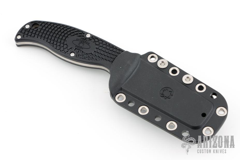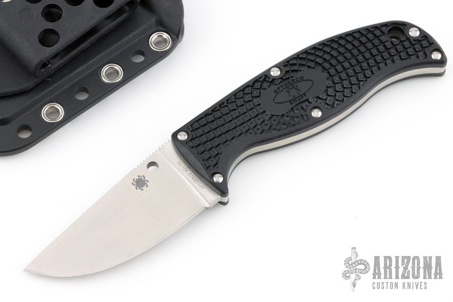 Savvy knife users know that most of a blade’s real work is done within the first few inches closest to the handle. So how much blade is enough? The Spyderco Enuff series answers that question in triplicate, offering three utilitarian fixed blades that provide all the function you need and nothing you don’t. Flat ground from VG-10 stainless steel, they all feature the same full-tang handle design capped with Bi-Directional Textured injection-molded FRN scales. This listing is for the leaf shaped blade profile and comes complete with a molded polymer sheath.