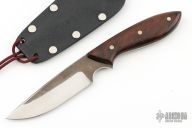 This Knife by Master Smith Murray Carter, features a two-tone San Mai blade .128 "Blade Stock, .947" Blade Depth.  The handle has wood scales and nickel silver pins over a tapered tang construction. Comes with a kydex neck sheath. Has some light scratches and patina, otherwise excellent condition.