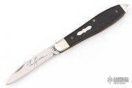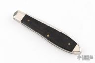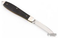 This Tony Bose and Case collaboration is from 2014. It features a polished drop point blade with nail nick and false top edge. The handle has nickel silver bolsters and brass liners. Nickel silver escutcheon, ebony covers, stainless steel spring and lanyard hole. Has a couple light scuffs and scratches, great condition otherwise.