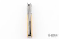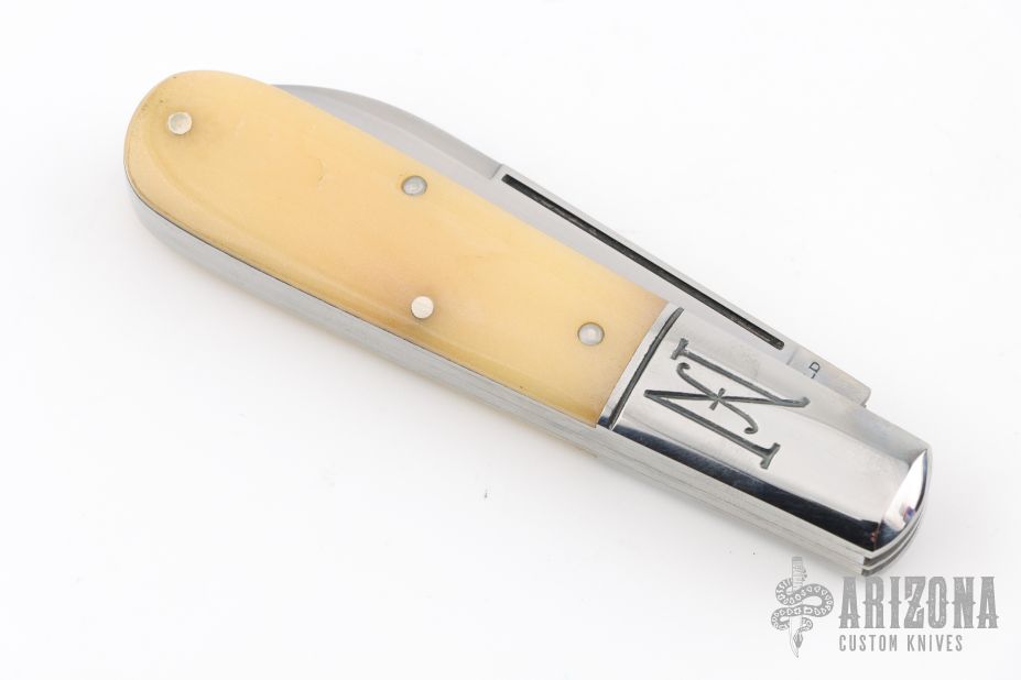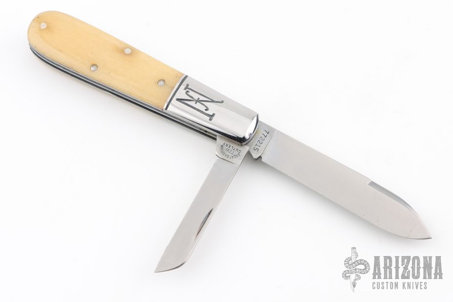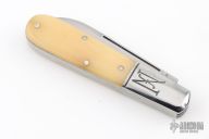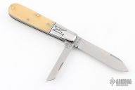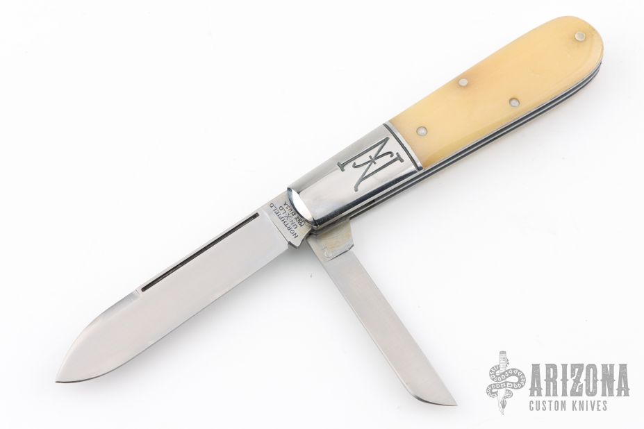 This slipjoint from Northfield features two satin finished blades with nail nicks. The handle has steel bolsters, smooth ivory bone covers with steel liners, and steel springs. Has half-stops. Includes original packaging. Excellent condition. 62 Made