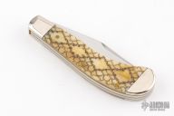 This slipjoint by Case features 2 mirror polished blades with nail nicks. The handle has pinched nickel silver bolsters, smooth bone covers, brass liners and stainless springs. Has a couple light scratches, otherwise excellent condition.