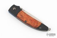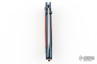 This 480 Shoki Nak-Lok features the unique Nak-Lok that uses tensile strength rather than compression to lock the blade. Bolster button releases blade. Anodized frame with G10 bolsters and wood scales. Comes with original box, papers and leather pouch with clip. Excellent condition.