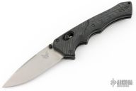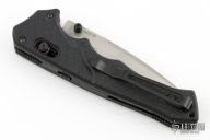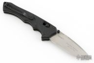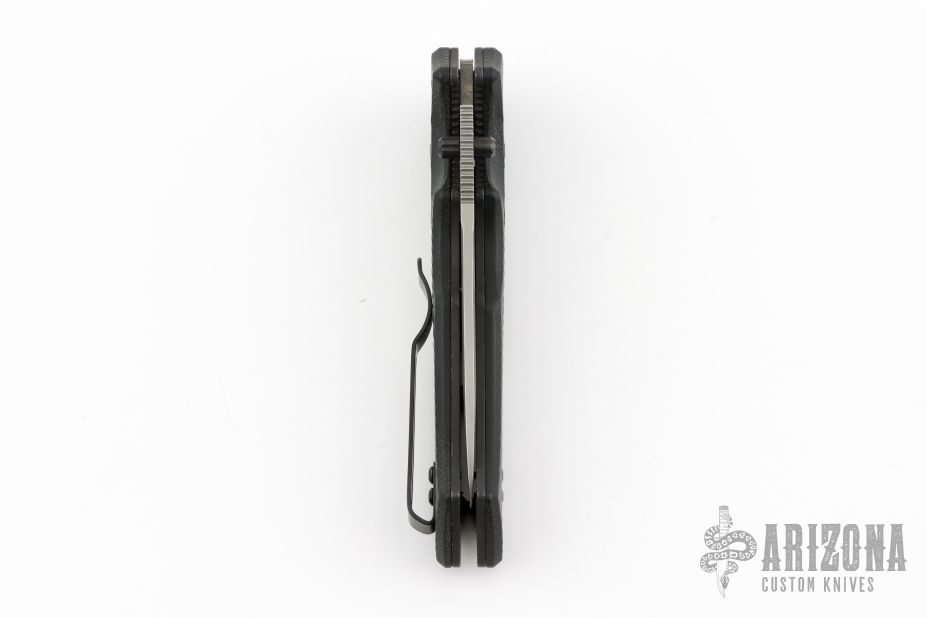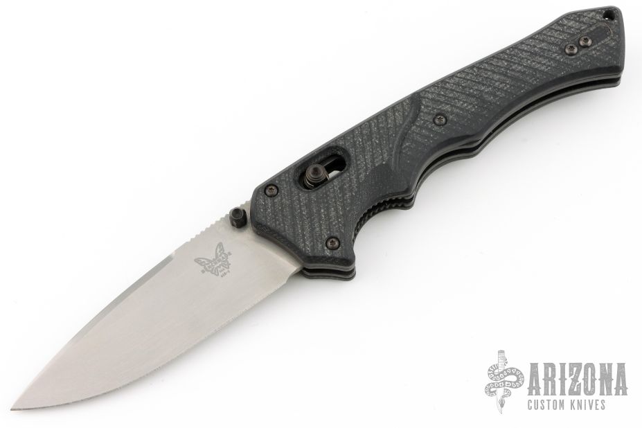 This Mini-Rukus by Benchmade features an assisted opening bead blasted drop point blade with false top edge, dual thumbstuds and notched thumbrest. The handle has black G10 scales over a black steel liners with a black stainless steel tip up clip. Has a safety. "Limited Edition 034 of 100". Comes with original box and papers. Excellent condition.