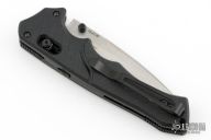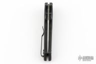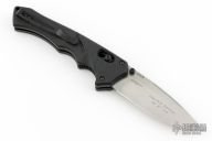 This Mini-Rukus by Benchmade features an assisted opening bead blasted drop point blade with false top edge, dual thumbstuds and notched thumbrest. The handle has black G10 scales over a black steel liners with a black stainless steel tip up clip. Has a safety. "Limited Edition 033 of 100". Comes with original box and papers. Excellent condition.