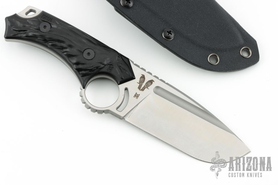 Midgards knife MuninV2 Raven handle scales made of aircraft aluminum elaborately milled