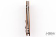 This Neutron Linerlock by Three Rivers features a stonewash finished blade with dual thumbstuds. The handle has wood scales, titanium liners with a titanium tip up reversible clip. Nice detent, lockup and blade seating. Comes with original box, and papers. Comes with extra scales: red g10, carbon fiber, and green micarta. Listing also includes extra hardware. Excellent condition.