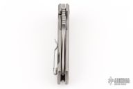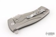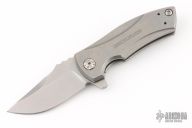This knife by Zero Tolerance is a collaboration with Les George. Features a tumble finished blade with notched thumbrest and flipper. The handle has a tumble finished titanium frame with a tip up reversible clip, single black barrel spacer. Stainless steel lockbar insert and integral overtravel stop. #0289. Excellent condition.