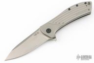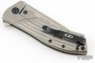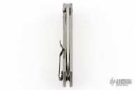 This 0801 Rexford Flipper #0835 has a stonewashed Elmax spear point blade with swedge. Handle is fluted titanium with black finished stainless steel tip up (RH/LH) clip and lanyard hole. Has a couple light scratches, otherwise excellent condition.