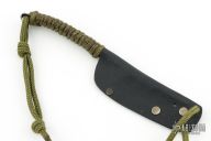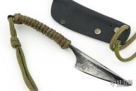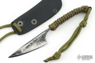 This Harpoon from Fred Perrin features a hand forged blade with hollow grind and thick tip, .221" blade stock and .762" blade depth, full tang construction. The handle is comprised of green cord wrap. Includes kydex sheath. Has some scratches, otherwise good condition.