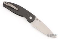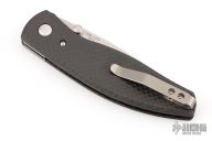 This Atom Linerlock by Three Rivers features a stonewashed blade with dual thumbstuds. The handle has carbon fiber scales, titanium liners and tip up reversible clip. Nice detent, lockup and blade seating. Comes with original box and papers.  Excellent condition.