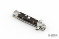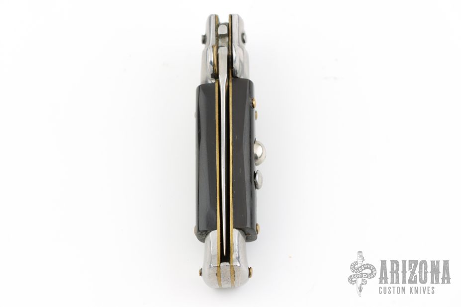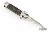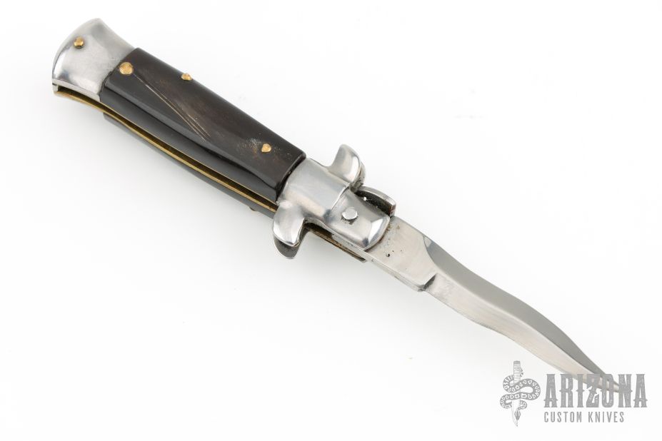 This auto features a kris blade. Stainless steel front and rear bolster and horn scales. Brass liners. Nice function, strong firing. Has some light scratches, otherwise great condition.