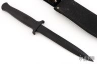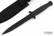 This Guardian II by Gerber features a double edged black coated blade, .242" blade stock and .939" blade depth, hidden tang construction. The handle is black coated cast aluminum. Comes with nylon sheath. Excellent condition. #B5792S