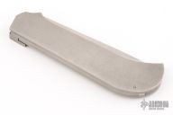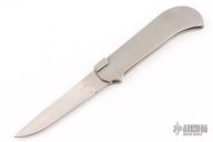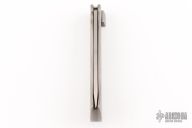 This side opening automatic features a satin polished blade. The handle has full bead blast finished titanium construction, with steel spring and backstrap. Marked "A011" in the backspacer. The knife can be opened and closed by lifting the lever away from the spine of the blade. Has some scuffs and scratches, good condition otherwise.