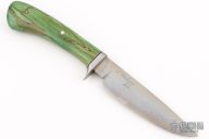 This knife by Master Smith J Neilson features a hand rub satin finished blade with nice hamon, .178" blade stock and 1.073" blade depth, hidden tang construction. The handle has a steel guard, dyed salted maple grip with single steel pin and a black spacer. Has a couple small oxidation spots, excellent condition otherwise.