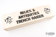 In The Box: Trench Raider, Sheath, Lighter, lanyard with bead, Trench Raider Playing Card, user documentation.