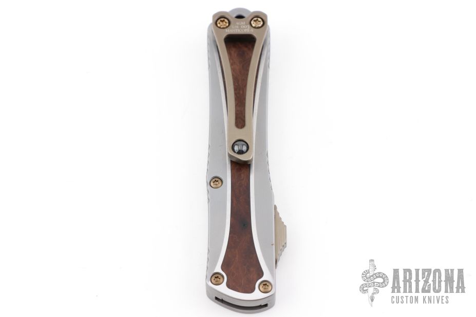 Manticore S - SS w/ Desert Ironwood Burl inlays - Mirror Polish Tanto
