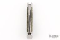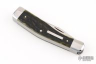 This Bent Gunstock by the world famous Tony Bose features hand rub satin finished blades with nail nicks. The handle has polished stainless steel bolsters, satin finished stainless steel liners and springs with green jigged bone covers and a stainless steel bar escutcheon. Has half-stops, flush in all positions. Centered blades. Comes with a zippered case. Excellent+ condition.
