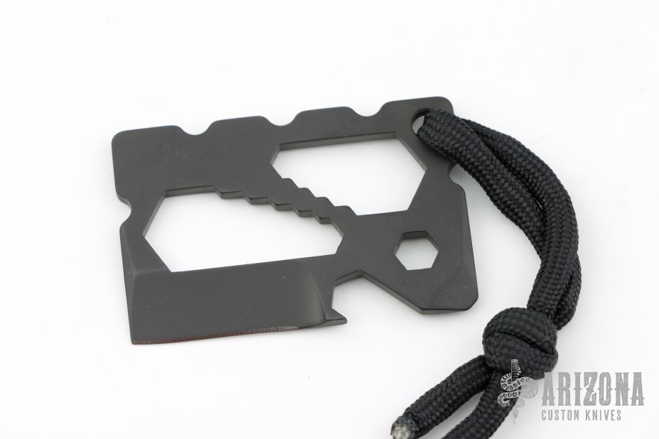 "Made of CPM S30V, this mini credit card tool features six SAE wrench sizes: 1/4, 5/16, 3/8, 7/16, 1/2, and 9/16. Also includes five Metric wrench sizes: 6, 8, 10, 12, and 14mm. Bottle opener doubles as a 5/16 wrench. A 1/4 hex driver opening and screwdriver tip is also included as well as a small cutting edge. Be mindful of the cutting edge and use extreme caution when using the tool functions" DLC finish.  Includes original bag and card.  Excellent condition.