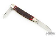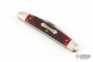 This slipjoint by Great Eastern Cutlery features mirror polished blades with nail nicks. The handle has nickel silver fluted bolsters, red jig bone covers, brass liners/pins. Comes with original tube and paper. Excellent condition.