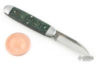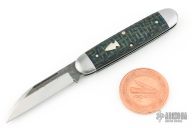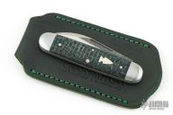 This Northwoods Knives Delta Jack features a wharncliffe style blade with swedge and long pull. The handle is comprised stainless steel bolsters, red burlap micarta covers over stainless steel liners and spring, nickel silver escutcheon. Includes leather case and a Northwoods challenge coin. Excellent condition.