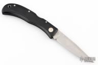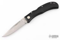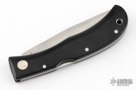 This Vintage lockback by AG Russell has a hand rub satin finished blade with nail nick. The handle has black linen micarta scales with nickel silver pins and a stainless steel backspacer. Has some light scratches, otherwise excellent condition. Comes with a nylon belt sheath.