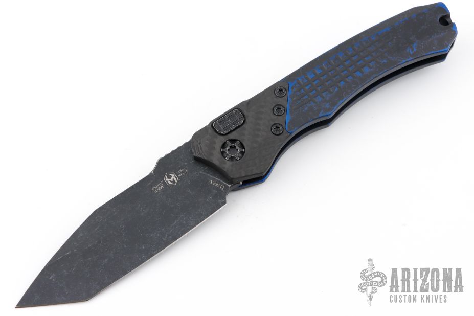 This Wraith Auto by Heretic Knives features a Battleworn black tanto blade with false top edge and notched thumbrest. The handle has a carbon fiber bolster, integral breakthrough aluminum handle with black tip up stainless steel clip and hardware. Comes with original box and draw string bag. S/N 01566 06/2022.  Excellent Condition.