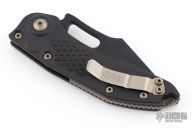 This Stitch Auto by Microtech Knives features a fully serrated DLC tumble finished blade and false top edge, notched thumb and finger rests. The handle has a black anodized and milled aluminum handle with a bronzed titanium backspacer, stainless steel hardware and clip, tip up carry, lanyard hole at the butt. Comes with original box and papers. S/N of 1978 and dated 07/2017. Excellent condition.