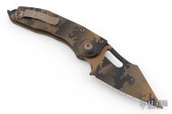 This Stitch Auto by Microtech Knives features a fully serrated coyote camo coated blade and false top edge, notched thumb and finger rests. The handle has an urban camo coated anodized and milled aluminum handle with a titanium backspacer, stainless steel hardware and clip, tip up carry, lanyard hole at the butt. Comes with original box and papers. S/N 022 and dated 11/2022. Excellent condition.