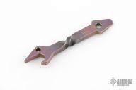 The Atwood Twisted Tim tools are made of titanium or hardened knife steels.  Features include a 5/16" hex wrench which doubles as a cap lifter, and a 7/16" wrench at the tail.  The "nose" serves double duty as both screwdriver and pry tip. Comes with original bag and card. Excellent Condition.