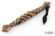 This brass kubaton by Robert Gardner is forged and decoratively twisted, lanyard hole at the butt. Has natural patina. Excellent condition.