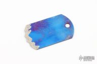 This Titanium Knife by Warren Thomas features a .040" thick "Fingerprint" anodized titanium blade and handle with a carbide edge, 1.221" blade depth. Excellent condition.