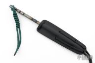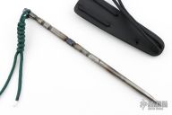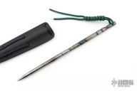 This spike was made from steel, has a lanyard hole, has filed grooves on the handle. Comes with a kydex sheath. Has a flamed finish. Excellent condition.
