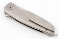 This Haptic by Holt Bladeworks features a mirror polish tumbled blade with a notched thumbrest and flipper tab. The handle features a milled titanium frame with a titanium tip up pocket clip with hidden hardware. Nice detent, lock up and blade seating. Includes the original box, card and stickers. Excellent Condition.