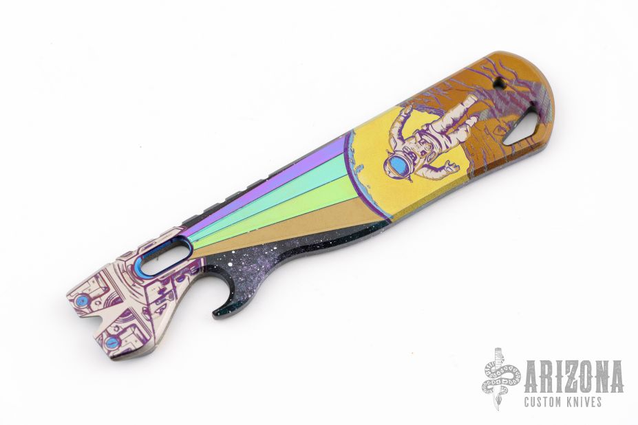 Customer SpacedOut anodized and Cerakote artwork designed by Paul Munko and interpreted by Northern Knives