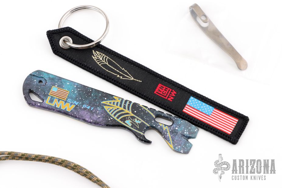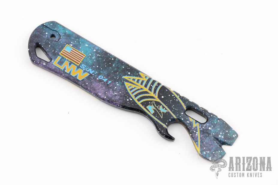 Made from tool grade 6AL-4V titanium, this custom milled "Galaxy" AAP 1.5 from LynchNW has been modified with our now tried and true multi layer anodizing process upon a Galaxy Cerakote background. The overall effect we believe really makes this Prybar truly out of this world!