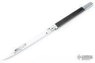 This Picklock Auto by Agasi Hambartsumian of Armenian Doctor Knives features a mirror polished dagger bayonet blade with a false top edge. The handle has a polished stainless steel frame with fileworked stainless steel backspacer, buffalo horn scales with brass pins. New from maker.