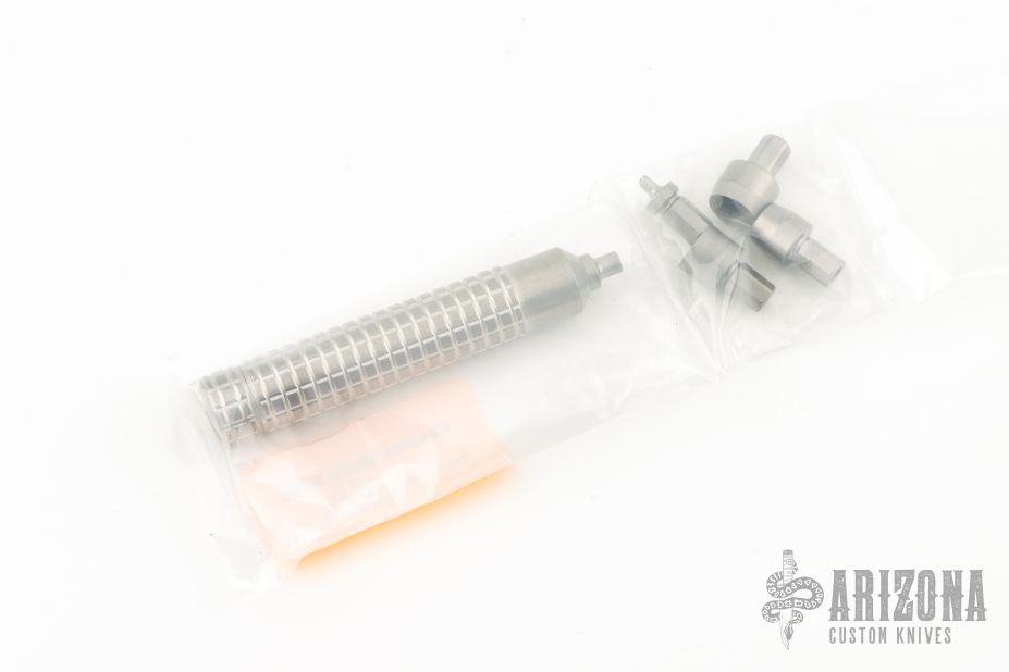 Handheld 303 Stainless Steel driver as well as 8 interchangeable bits, spanning various Microtech knife models and years. The Tool Kit has bits for: Ultratechs (older and newer models), UTX-85s, UTX-70s (older and newer models), Troodons, Combat Troodons, Diracs, Dirac Deltas, LUDTs, and Sigils; it also includes glass breaker bits for Ultratechs, Combat Troodons, and Dirac Deltas. The bits are sold only as a set and not individually.