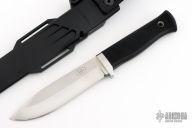 Fallkniven's S1 Pro fixed blade has a sturdy blade made from Lam.CoS (laminate cobalt) steel. The satin-finished clip-point blade is convex ground for extra strong cutting and penetrating power. The checkered Thermorun handle provides an excellent grip, even with cold or wet hands. The tang protrudes slightly at the pommel (less than 1/16"). This Fallkniven S1 Pro knife comes with a zytel belt sheath. Comes with original box and Zytel sheath. Excellent condition.