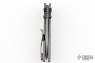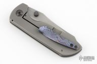 This Osprey by Jared Price features a tumble finished blade with false top edge and dual thumbstuds. The handle has a bead blasted and drilled titanium frame with a Timascus tip up clip. Timascus barrel spacers. Includes the original box and papers, Dated 01/06/2024.  Excellent Condition.