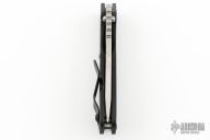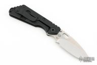 This Mick Strider SNG framelock folder features a satin/stonewash finished drop point blade with thumbhole and notched thumbrest. The handle has a black titanium frame with titanium clip, tip up carry. Jimping on blade spine. Includes Hinderer "Lock Bar Stabilizer" for maximum reverse lock retention. Nice detent, lockup and blade seating. New Condition.